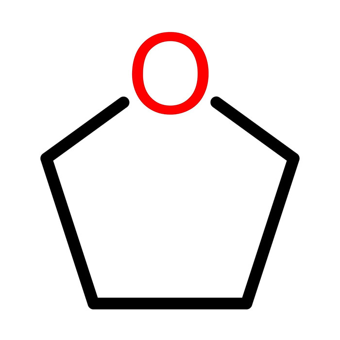 Tetrahydrofuran, also known as oxolane or 1,4-butylene oxide, is a heterocyclic organic compound with the chemical formula C₄H₄O. It belongs to the ether family and is the complete hydrogenation product of furan. At room temperature, it is a colorless, volatile liquid with an ether-like odor. It is soluble in most organic solvents, including water, ethanol, ether, acetone, and benzene, earning it the nickname "universal solvent." It is partially miscible with water at room temperature. It exhibits low toxicity, a low boiling point, and excellent fluidity.